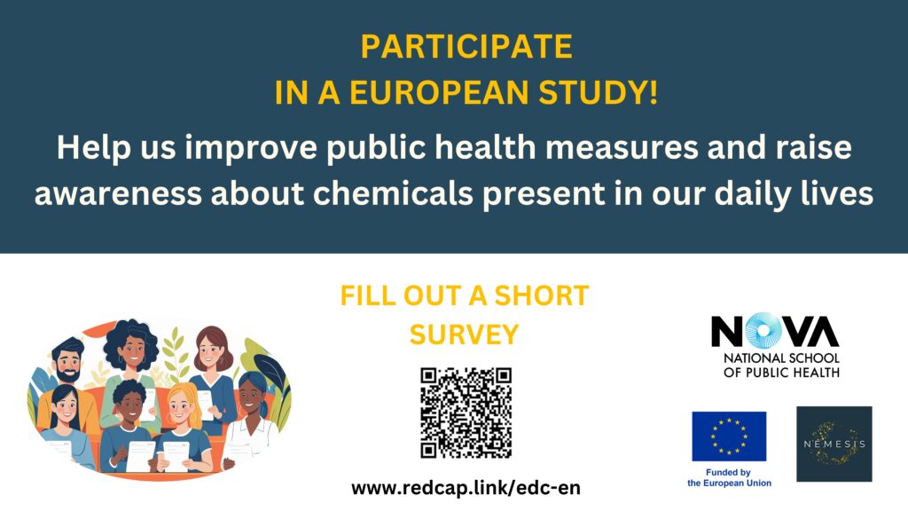 Researchers from the NOVA National School of Public Health, in Portugal, as part of the NEMESIS project, are studying what people think about chemicals present in our daily lives to understand their needs and help improve public health measures. This study has been approved by the Ethics Committee of the NOVA NSPH, and it will be conducted in accordance with the ethical guidelines of the Helsinki Declaration on Good Research Practices with Human Beings.